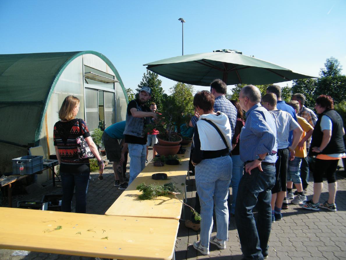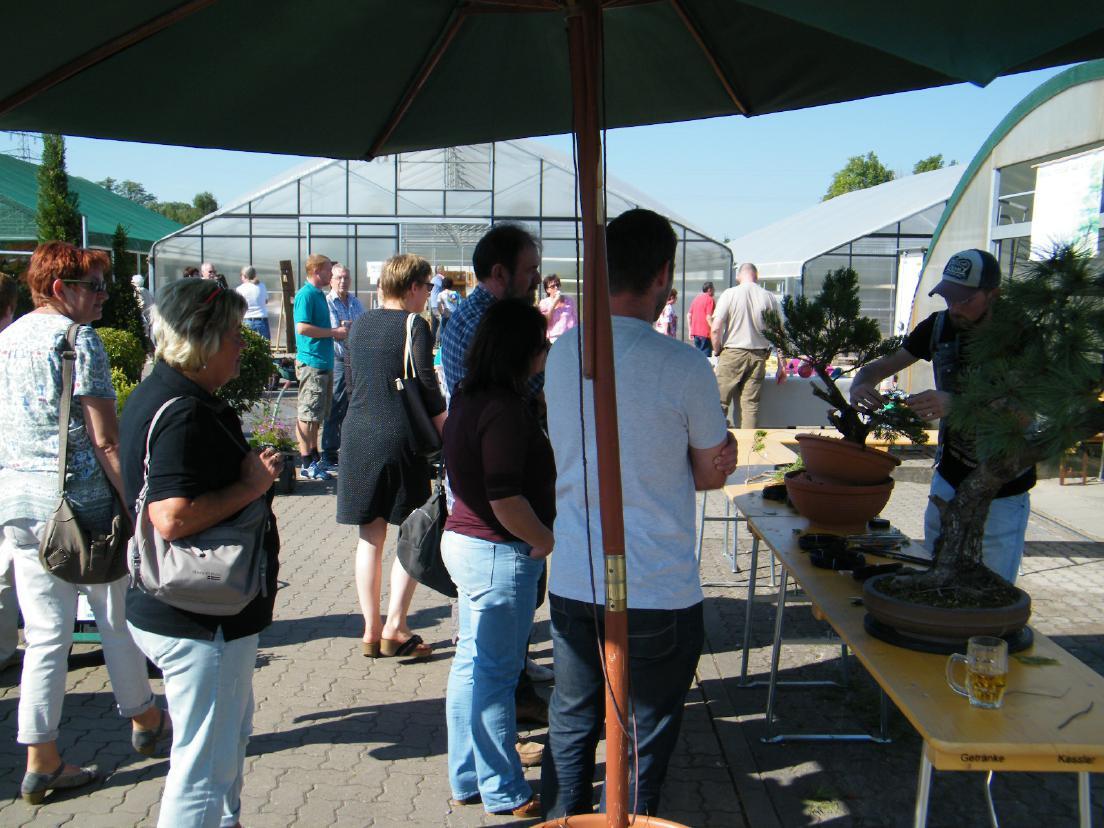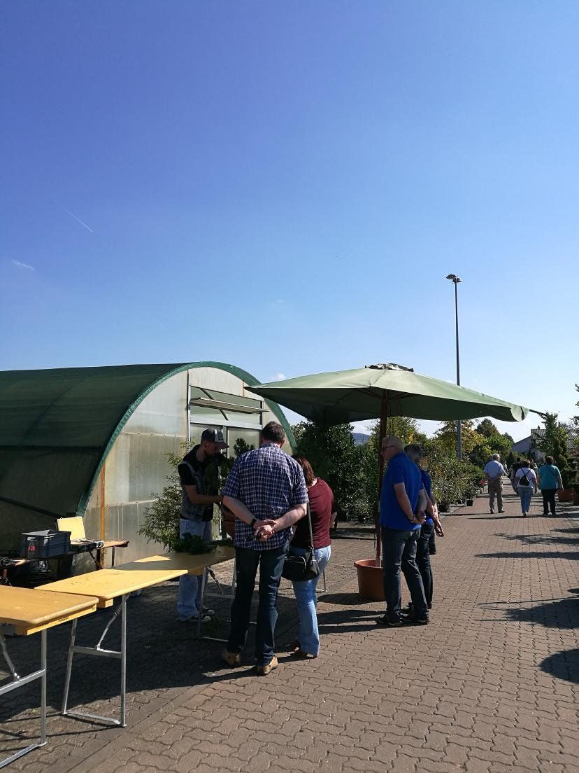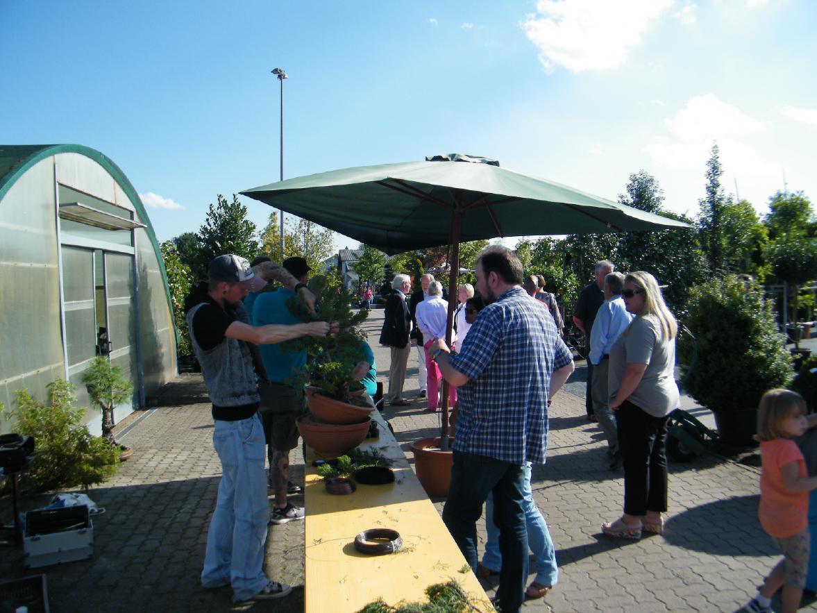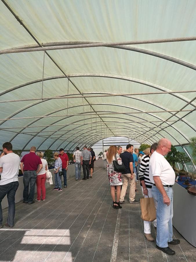 am 24. und 25.09.2016 fand unsere diesjährige Bonsai-Ausstellung anläßlich der offenen Tage bei der Fa. Baumschule Leick in Merzig/Ballern statt. Vorweg, das Wetter war an diesem Wochenende vorzüglich, sodass unsere Ausstellung am Samstag Morgen recht fix aufgebaut war. Der Inhaber der Baumschule Herr Leick als auch seine zahlreichen Mitarbeiter waren sehr freundlich und hilfsbereit. Einige haben als Pflanzenfachleute unsere Bonsai´s bestaunt, gelobt und waren auch teilweise überrascht, dass Bonsaigestaltung und -haltung doch so weit von der „normalen“ Pflanzenarbeit abweichen kann.