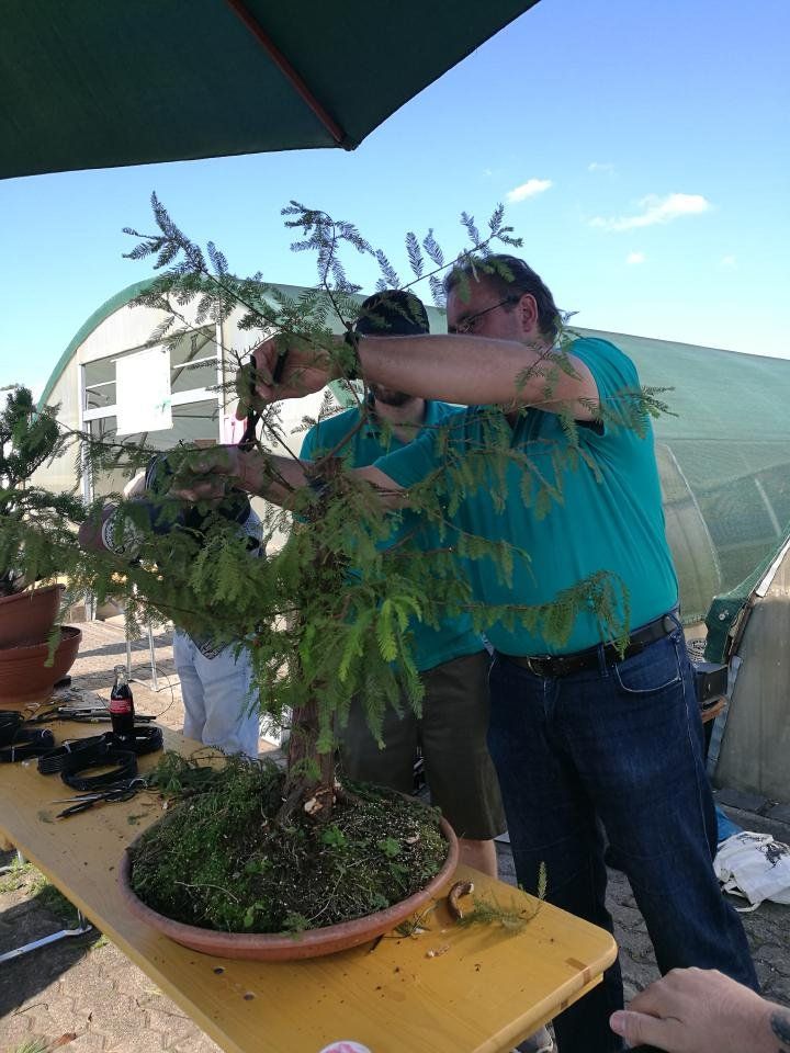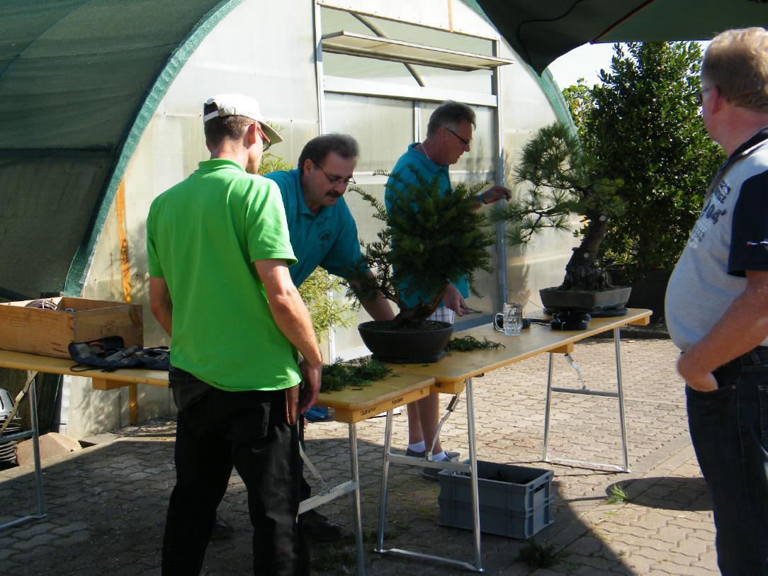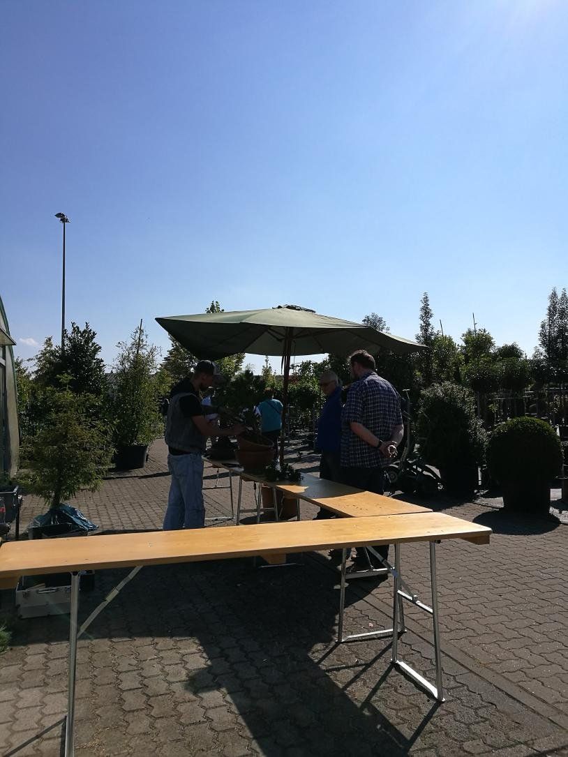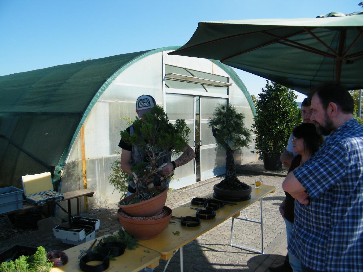 am 24. und 25.09.2016 fand unsere diesjährige Bonsai-Ausstellung anläßlich der offenen Tage bei der Fa. Baumschule Leick in Merzig/Ballern statt. Vorweg, das Wetter war an diesem Wochenende vorzüglich, sodass unsere Ausstellung am Samstag Morgen recht fix aufgebaut war. Der Inhaber der Baumschule Herr Leick als auch seine zahlreichen Mitarbeiter waren sehr freundlich und hilfsbereit. Einige haben als Pflanzenfachleute unsere Bonsai´s bestaunt, gelobt und waren auch teilweise überrascht, dass Bonsaigestaltung und -haltung doch so weit von der „normalen“ Pflanzenarbeit abweichen kann.